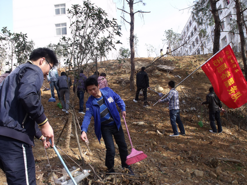 为了积极响应青年志愿者服务队的宗旨,3月16日下午,社会科学系青年志愿者服务队在团总支书记梁伟的带领下在我院举行了美化校园的活动,经过一个多小时的劳动,青年志愿者服务队将此处的卫生打扫的整洁一新。