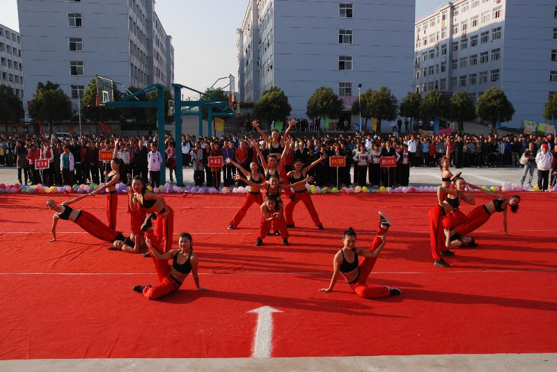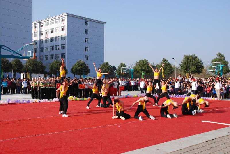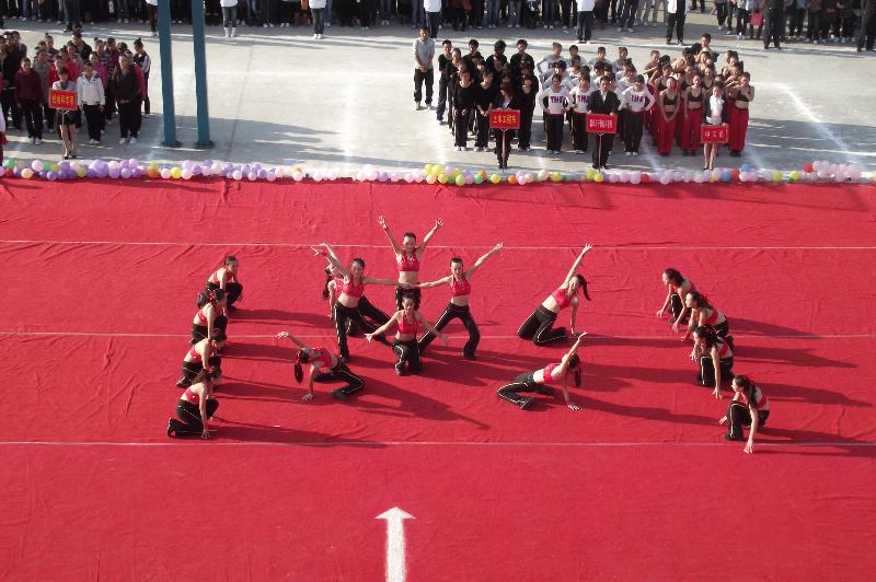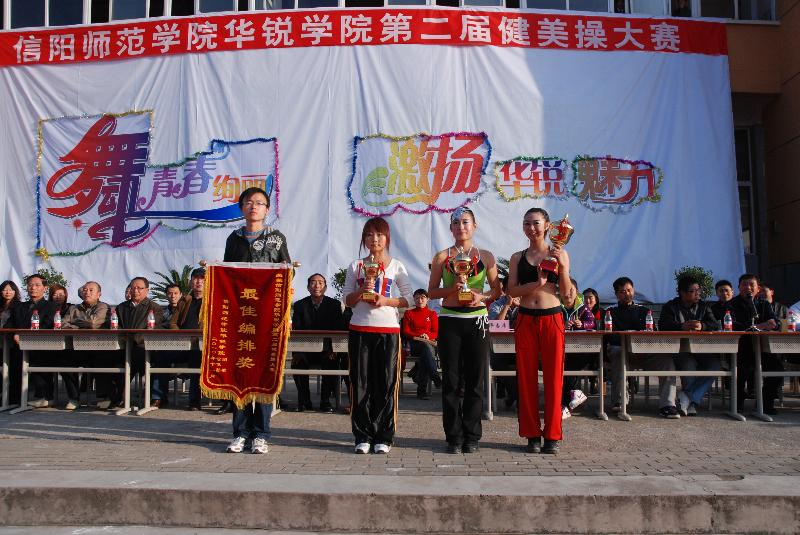 舞动青春绚丽,激扬华锐魅力。11月19日下午3点,我院第二届健美操大赛在北篮球场隆重举行。党委书记祝军,副院长王忠阁,办公室主任张柏平,学工部副部长、团委书记李明以及各系主任、行政秘书、团总支书记等观看了比赛。信阳师范学院体育学院及我院公体部的七名老师担任大赛评委。