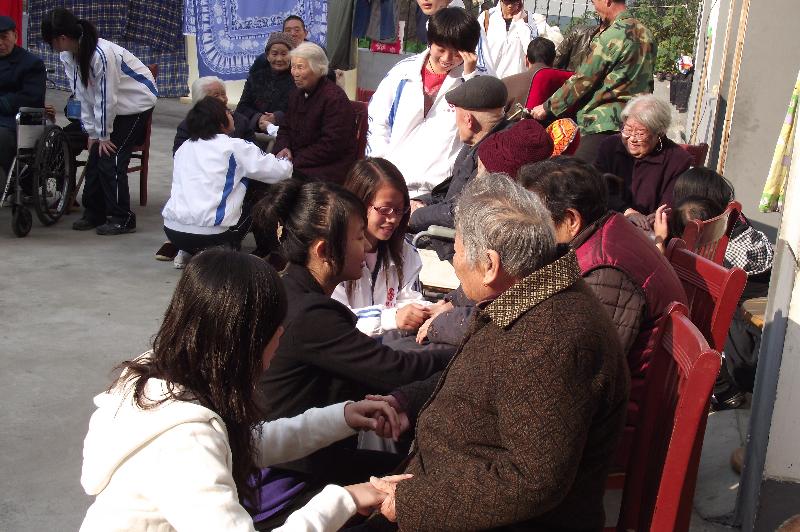 同学们的到来受到了老人们的热烈欢迎。首先,同学们为老人们表演了精心编排的节目,表达了我院师生对老人们的祝福与关怀。节目结束后,同学们陪老人聊天,给老人们剪指甲,和老人们下棋,为老人们按摩。老人们也向大家讲述了自己的人生经历。最后,学生会的成员们纷纷和老人们合影留念,在老人们紧握的双手和不舍的眼神中,结束了此次慰问活动。