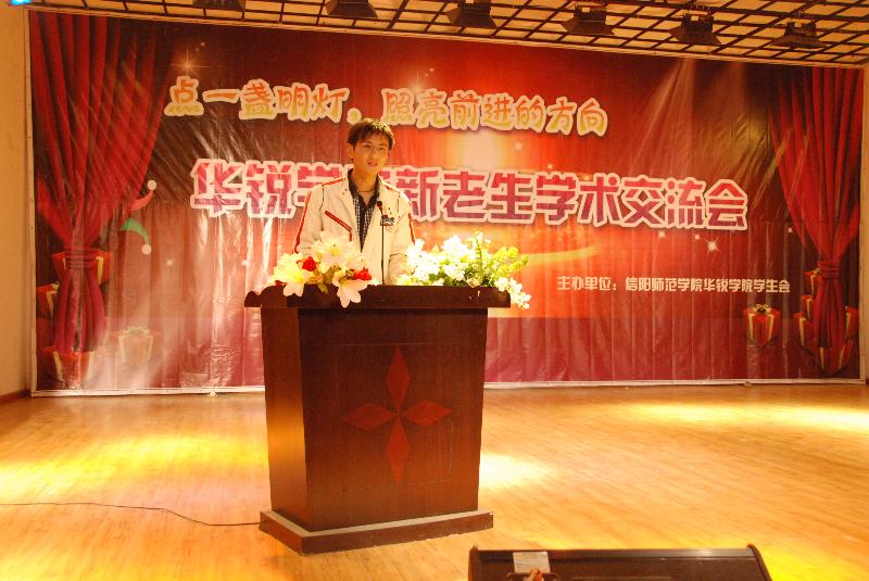 为帮助大一新生找到目标,定好方向,合理安排自己的大学生活。11月12日晚,“新老生学术交流会”在大学生活动中心举行。团委老师,各系团总支书记,信阳师范学院学生会主席团成员以及大一新生参加了本次活动。