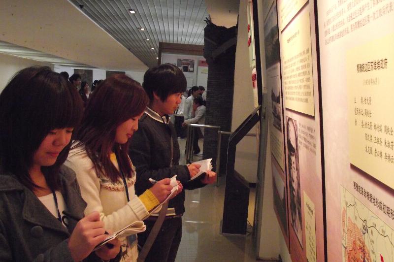 同学们在讲解员的引导下有秩序地进入场馆参观,馆内通过图片宣传,实物展示以及现代化的声、光、电等科技手段生动再现了当时的场景,记录了中国共产党的成长发展历程,展现了战争年代老区的英雄儿女为了祖国的解放事业不屈不挠,英勇献身的感人场面。