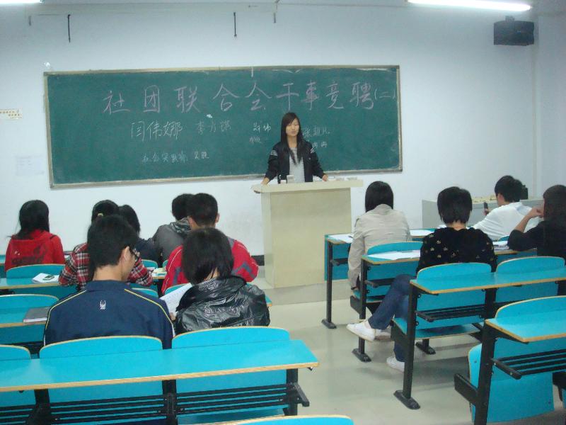 本次换届纳新工作于9月15日开始在全院范围内广泛宣传和动员。新生军训期间通过展板、海报、广播站等宣传形式对学生会、社团联合会进行了宣传,并在校内设立咨询台,组织学生干部向新生介绍学生会、社团联合会的部门职能,并现场解答同学们的问题。9月28日主席团换届招聘工作在团委会议室举行,团委书记李明、各系团总支书记、团委老师以及往届学生会主要干部担任评委;10月10日团委老师及学生会、社联主要学生干部对各部长进行了面试;10月12日学生会干事招聘活动在二号教学楼举行。2010级新生热情很高,本次换届纳新约有500多人报名参加。