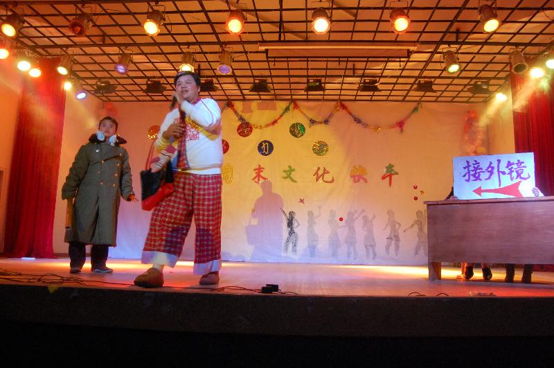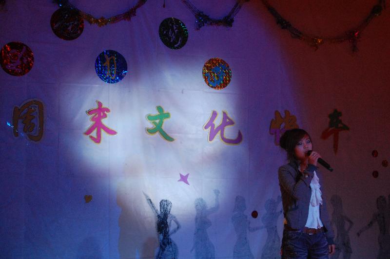 12月17日晚,由团委、学生会、社团联合会主办的2009年“华美恋尘,魅力诱惑”周末文化快车在大学生活动中心举行。办公室主任张柏平,中文系主任傅瑛,社科系主任陈录生,办公室主任助理张俊忠,艺术与体育系副主任张甲楠,学工部副部长、团委书记李明,学工部、团委及各系有关老师和600余名同学共同观看了晚会。