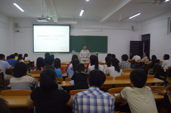 6月16日下午,2014-2015学年我院“特优社团”终评在行政楼411举行。院团委副书记胡秀云,团委老师王华,王红出席终评会。院社团联合会及各社团负责人参与了终评活动。