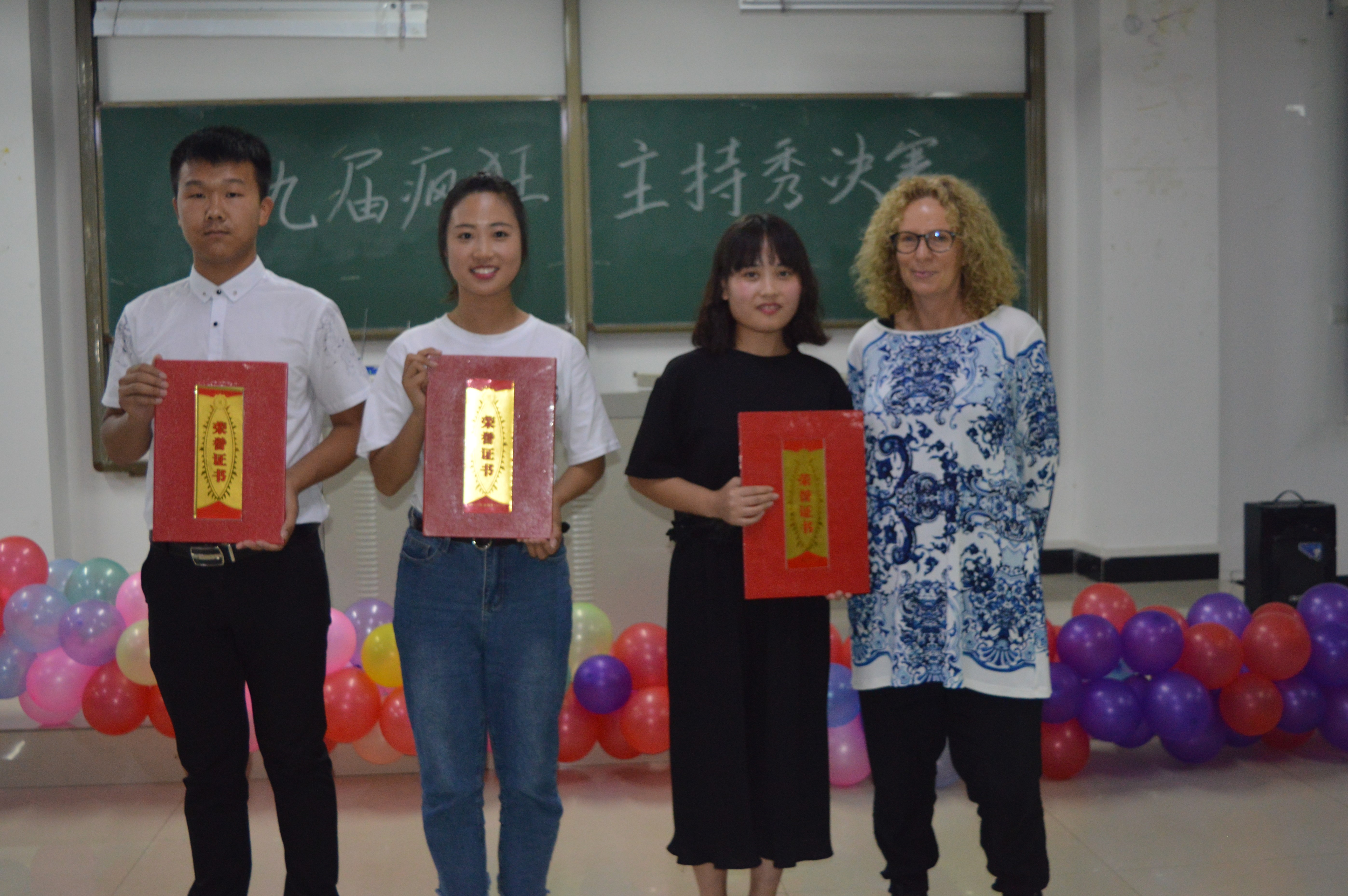 5月21日晚,由外国语学院英语俱乐部举办的第九届疯狂主持秀在人文楼308室精彩上演。本次比赛邀请了外国语学院院长罗德喜教授,外教Peter,Heather,Mura,Chris,作为评委。
