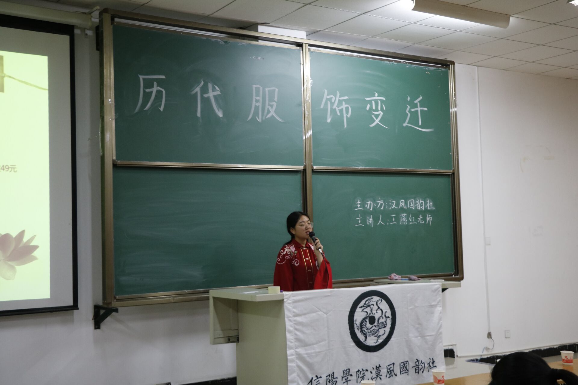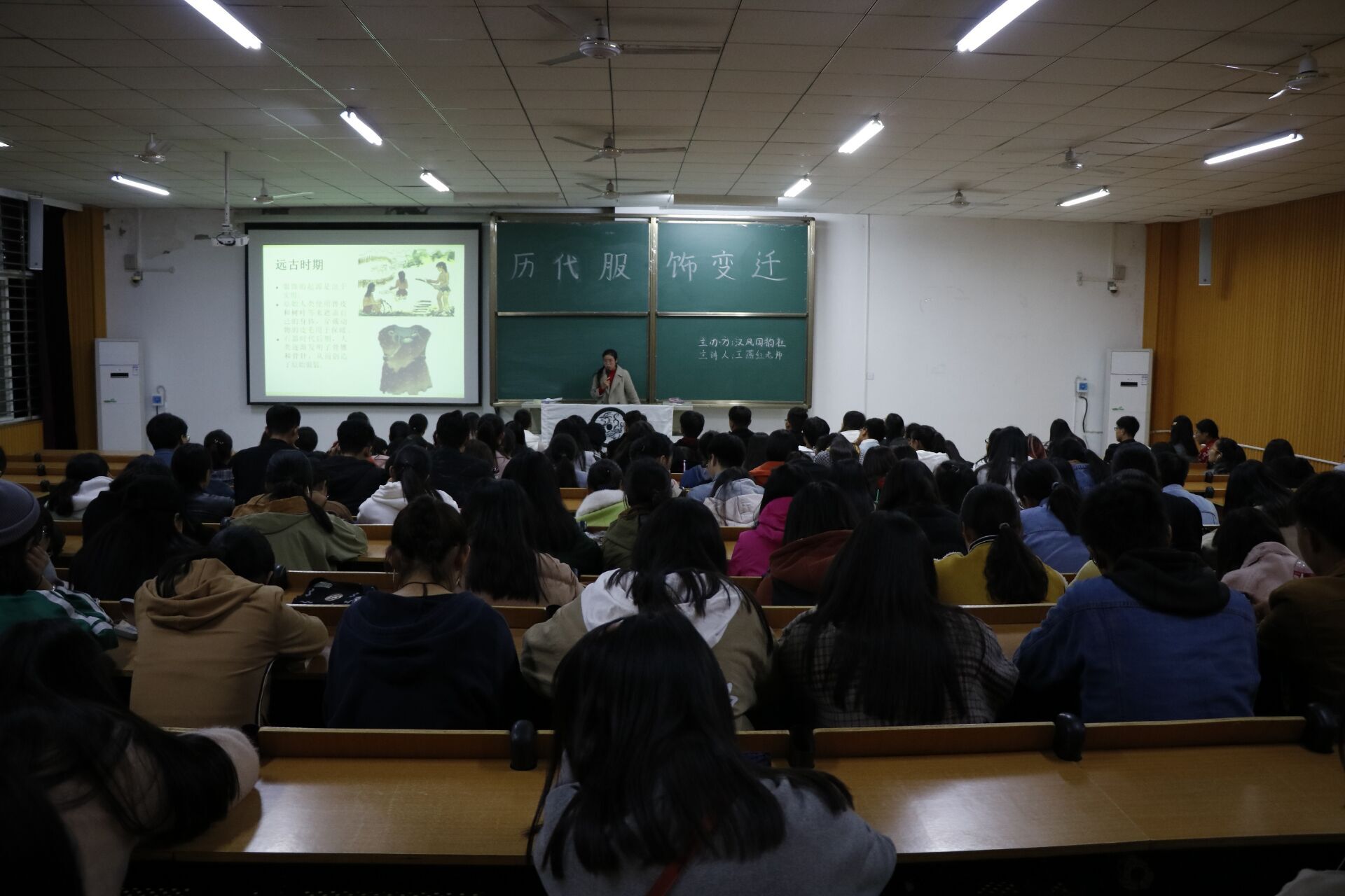 11月15日晚,汉风国韵社在社科楼219室举办了以“历代服饰变迁”为主题的汉服知识讲座。社团指导老师、历史教研室王燕红为本次讲座的主讲老师。学校社团联合会、志愿者服务中心负责人代表,社会科学学院、汉风国韵社的同学们共同聆听了本次讲座。