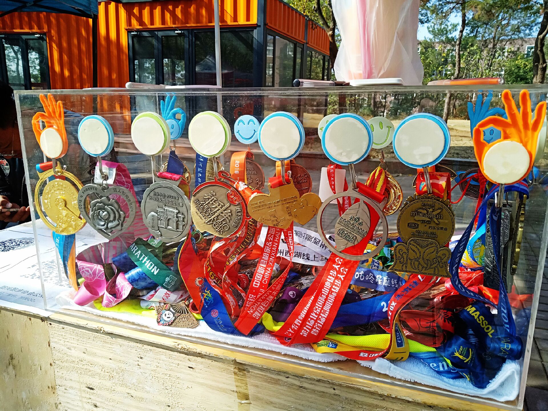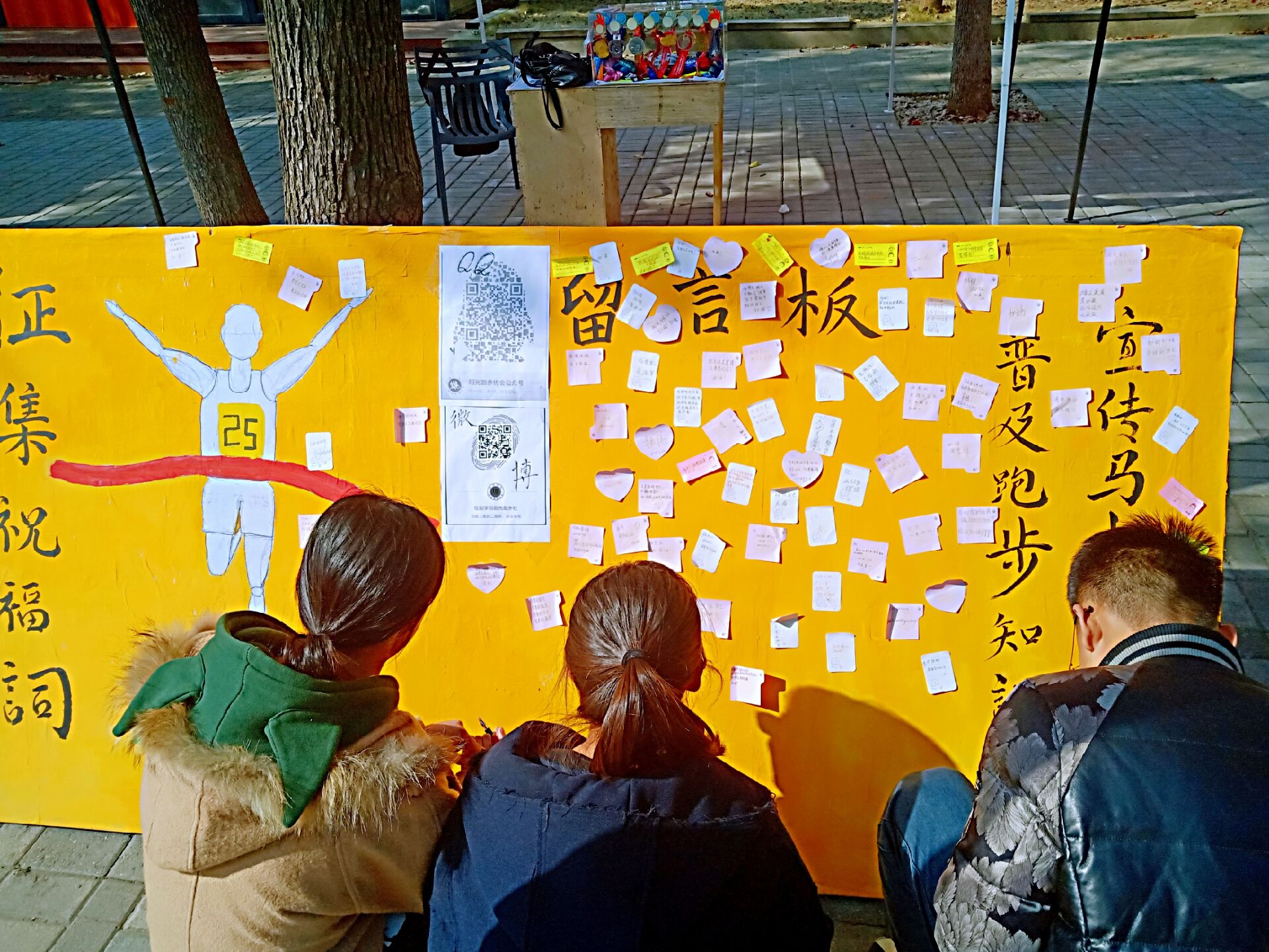 比赛前期,阳光跑步协会在校内为马拉松运动员发起签名条幅送祝福和征集寄语等活动,为了更好的向全校师生推广马拉松文化,普及马拉松知识,阳光跑步协会精心收集近三年我校优秀校友们参加马拉松的参赛包、路线图、奖牌等纪念品给大家展示马拉松的魅力。