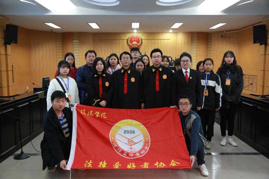 11月28日,在第五个“12·4”国家宪法日即将来临之际,受信阳市普法办委托,我校社会科学学院法律爱好者协会受邀参加由信阳市普法办、信阳中院联合开展的宪法主题公众开放日活动。通过旁听中院刑一庭公开开庭审理被告人尚某涉嫌贩卖毒品案一审庭审全程,近距离了解了法院的审判工作,为同学们上了一堂生动的法治教育课。