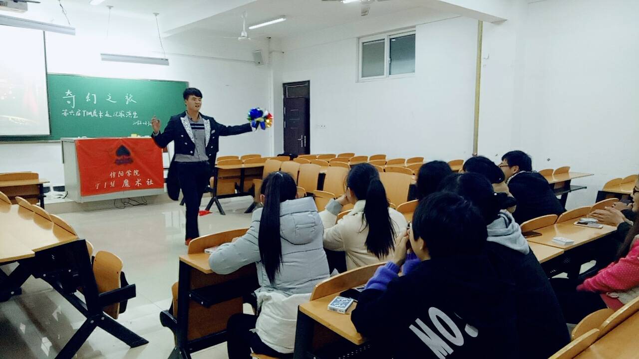 11月30日晚,TIM魔术社在人文楼319室举办以“描绘信院特色 绽放魔术魅力”为主题的“奇幻之旅”魔术活动。