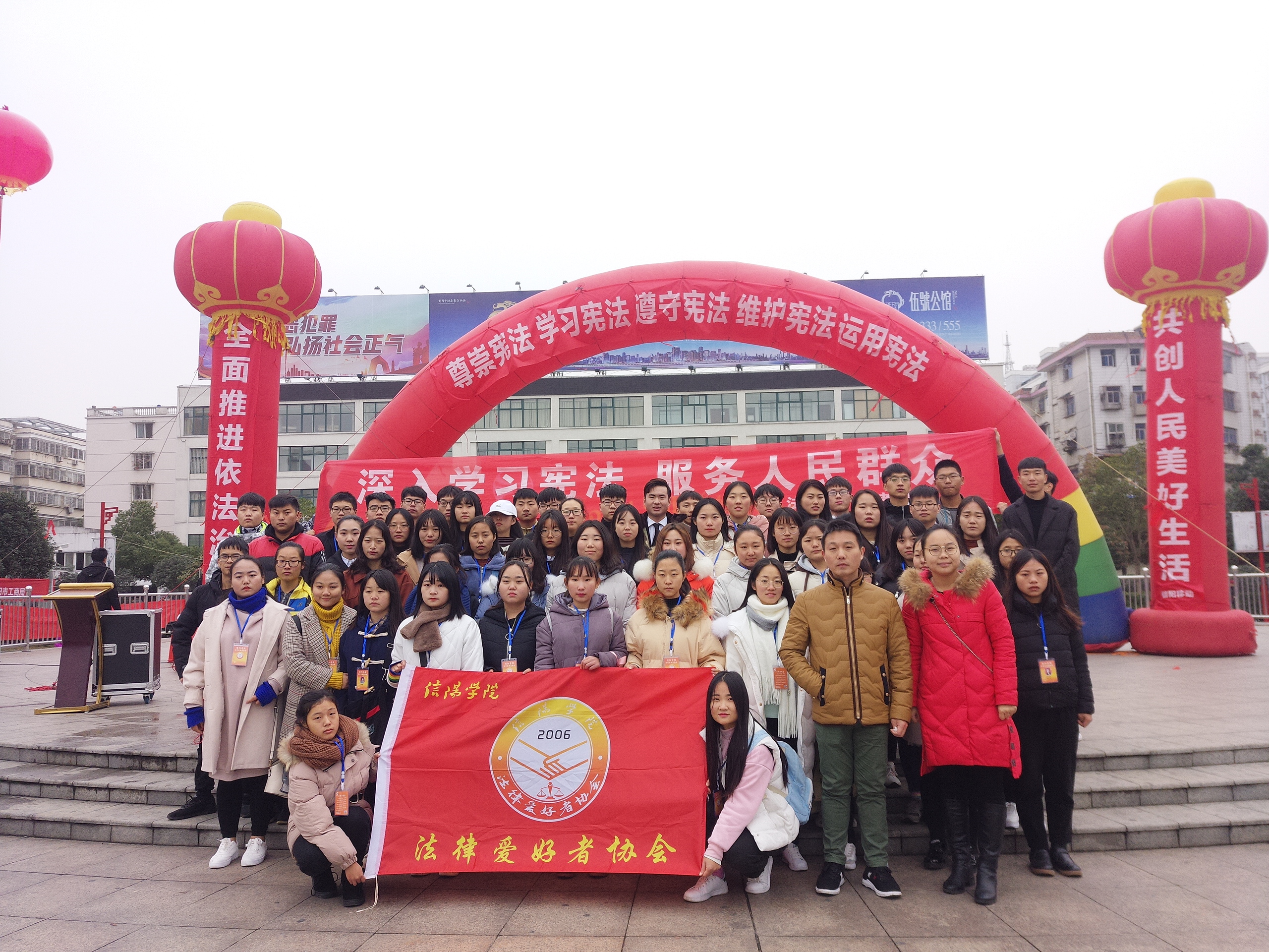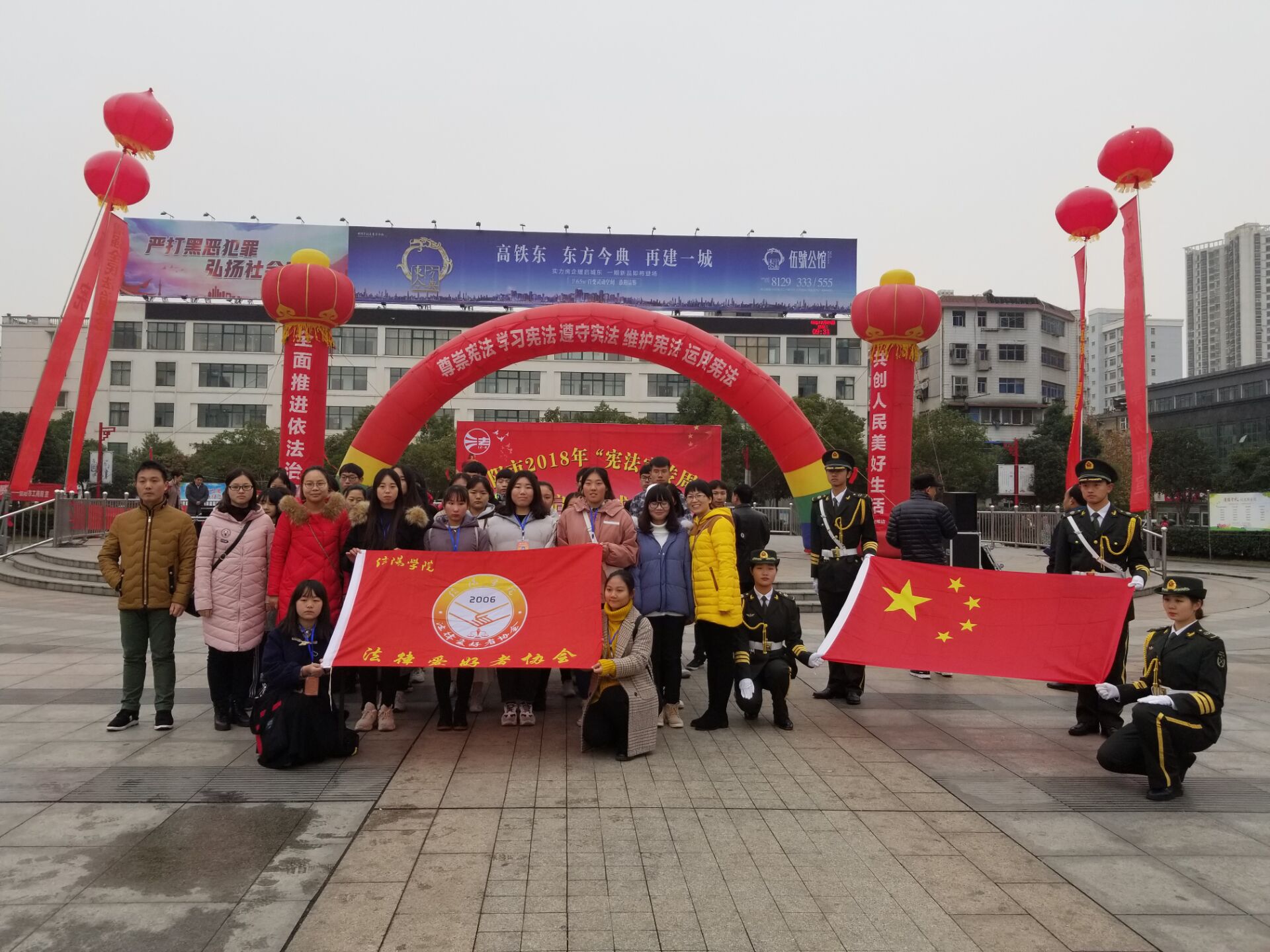 12月4日上午,法律爱好者协会在社会科学学院行政秘书刘颖方,辅导员老师陈功林、熊天玉以及法律爱好者协会指导老师胡晶的带领下,参加我市2018年“宪法宣传周”启动仪式。