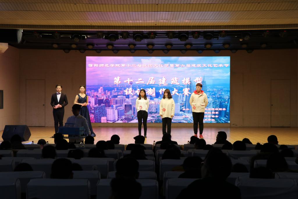 为提倡建筑的节能环保,培养和提高学生的动手能力。12月11日晚,我校建筑艺术协会与信阳师范学院建筑爱好者协会在信阳师范学院理科楼报告厅隆重举办了第十二届建筑模型设计制作大赛。我校土木工程学院徐伯荣教授、连星耀教授,校团委周扬,土木工程学院学工秘书徐超,土木工程学院团总支书记吴琼茹,建筑艺术协会指导老师王冬冬,信阳师范学院校团委创新实践部部长许霏,信阳师范学院建筑与土木工程学院袁晓辉博士、马文强博士、尹晓萌博士,信阳师范学院建筑与土木工程学院团委书记张晓博,信阳师范学院建筑爱好者协会指导教师张伟等出席了本次比赛并担任评委,我校及信阳师范学院新生代表一同观看了此次比赛。