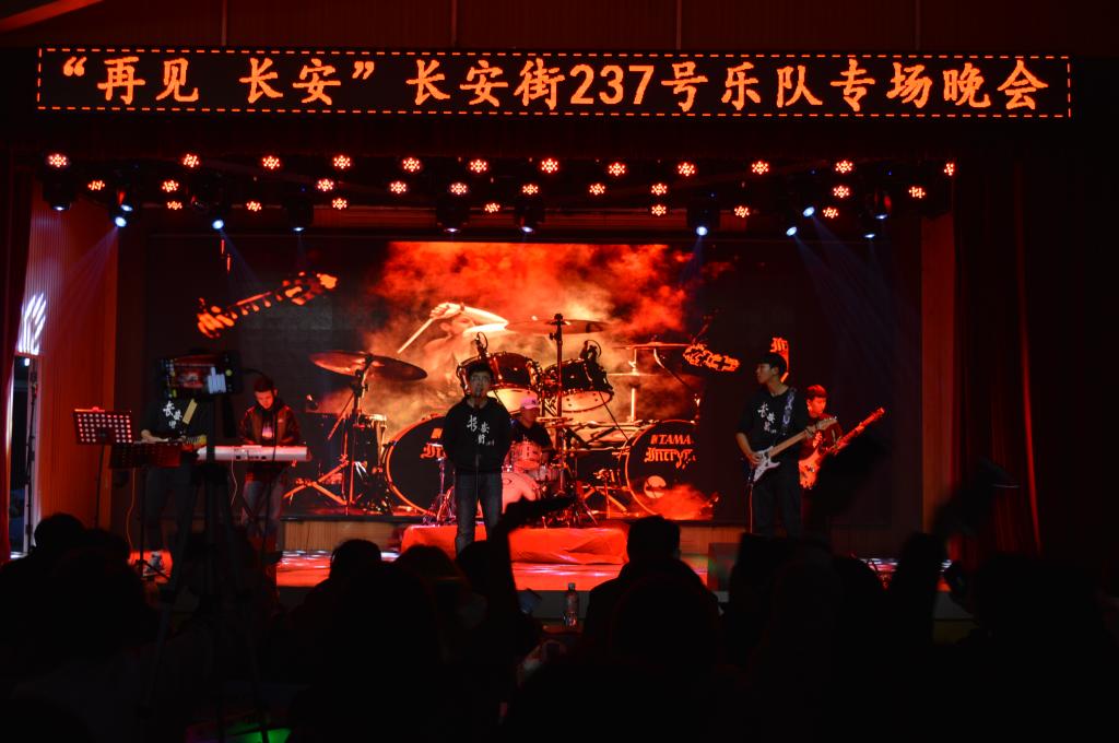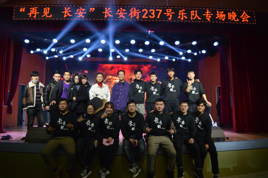 灯光渐暗,音乐响起,伴随着尖叫声,《曾经的你》、《无地自容》、《都选C》等一首首耳熟能详的歌曲点燃开场。吉他弹唱《嘿!姑娘》给观众们带来了不一样的听觉冲击;信阳师范学院“one of me”乐队友情客串,为大家带来了弹唱歌曲《山海》,嘶吼怒放的歌声再次点燃全场。最后,“长安街237号乐队”全体成员带来的《晚安》、《送别》为本场晚会划下了圆满的句号。