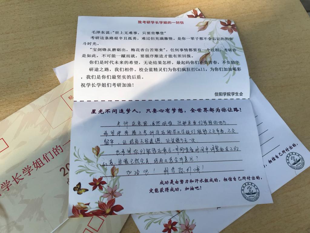 此次活动发扬了校学生会“竭诚为你”的精神,活动中缓解了考研学子的精神压力,相信通过系列活动的举办及全校领导老师和同学们的大力支持下,信院学子在寒冬的考研中能多一份坚持、多一份自信,在考场中赛出水平,被心仪的院校录取。