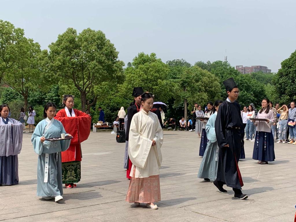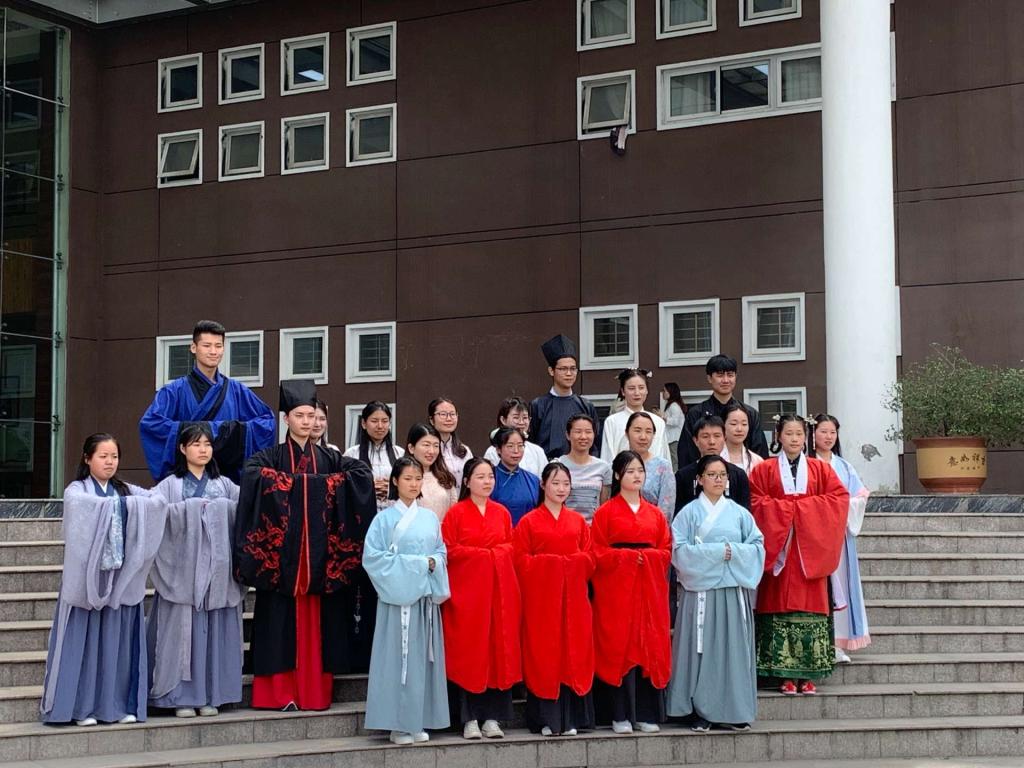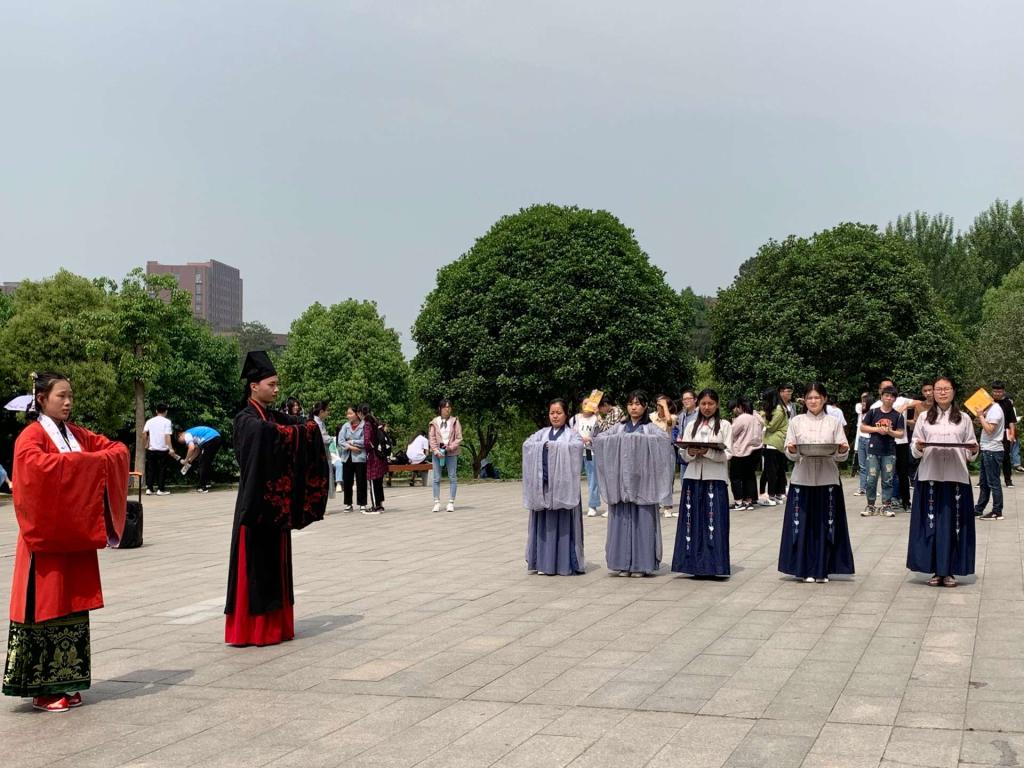 5月14日上午,汉风国韵社在图书馆前小广场举办“成人礼”展演活动。社会科学学院学工干事王晶,社团指导老师王燕红,辅导员刘雪、曹惠、陈功林,及部分学生代表参加了此次活动。