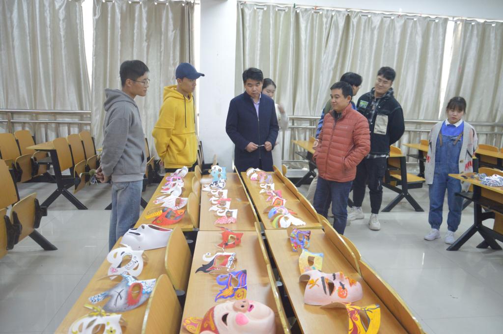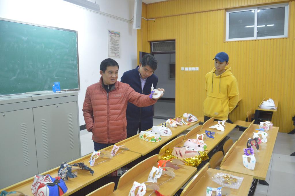 11月8日,设计绘画爱好者协会在艺术楼206室举办第七届“华设”杯面具设计比赛,美术与设计学院党总支书记袁军、团总支书记刘加宽莅临现场并担任评委。