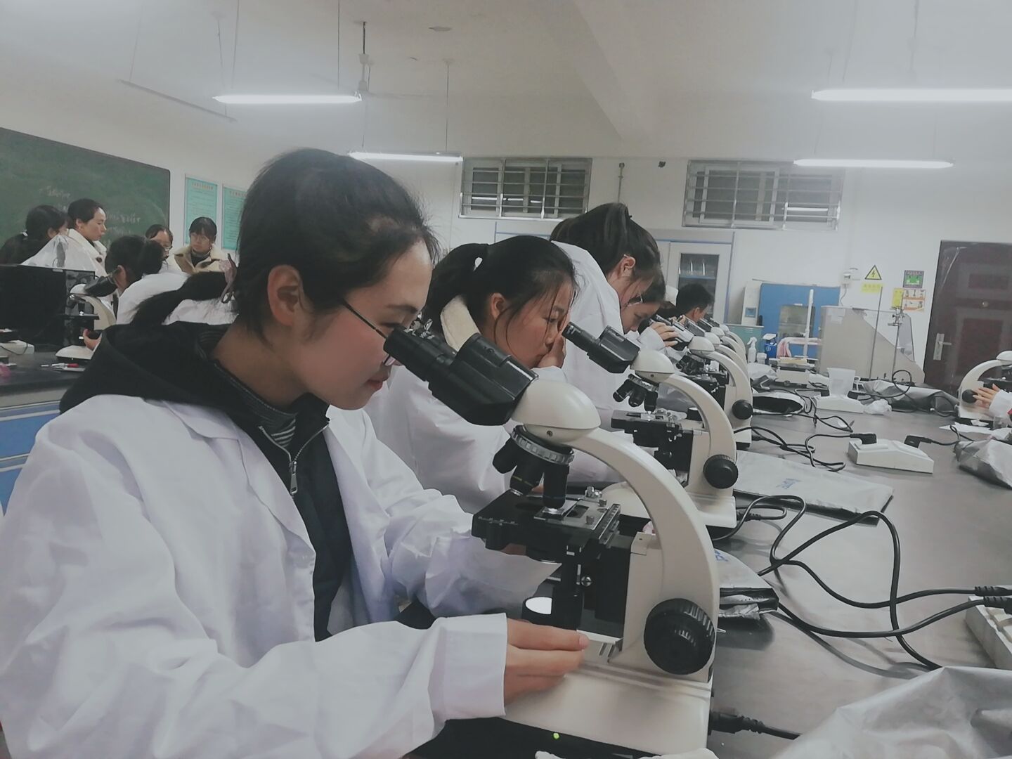 此次活动分为“洋葱制片观察”和“叶绿素提取和荧光观察”两个实验。社团负责人对活动实验步骤,实验操作方法,实验注意事项进行详细讲解,并将活动成员分小组。过程中,成员们积极投入实验,制作实验制片,使用显微镜观察制片,并用手机拍摄实验结果作为数据保留。