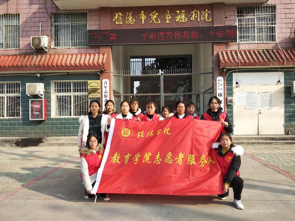 12月8日,教育学院志愿服务队前往浉河区儿童福利院,为那里的孩子们送去关怀和温暖。