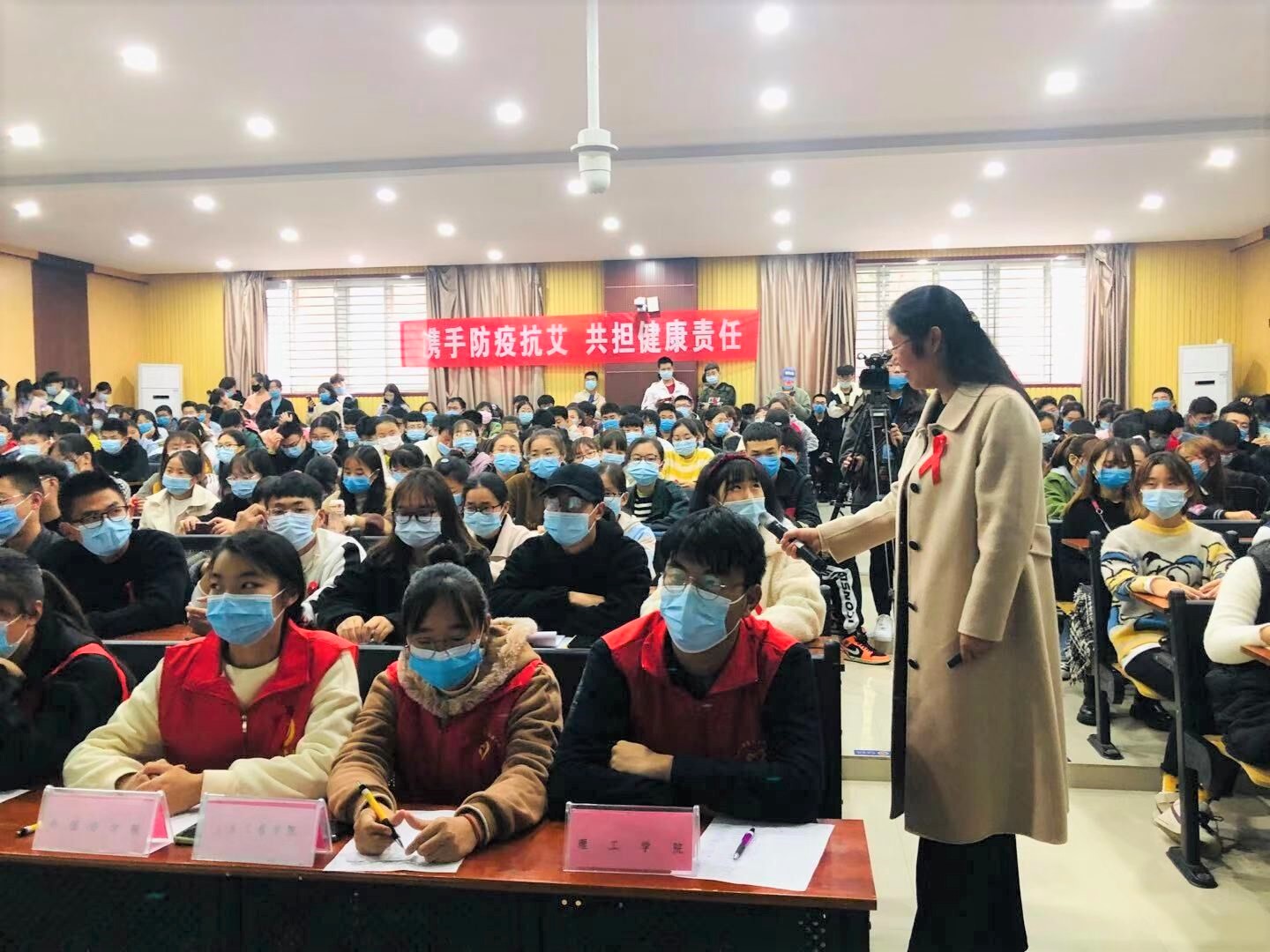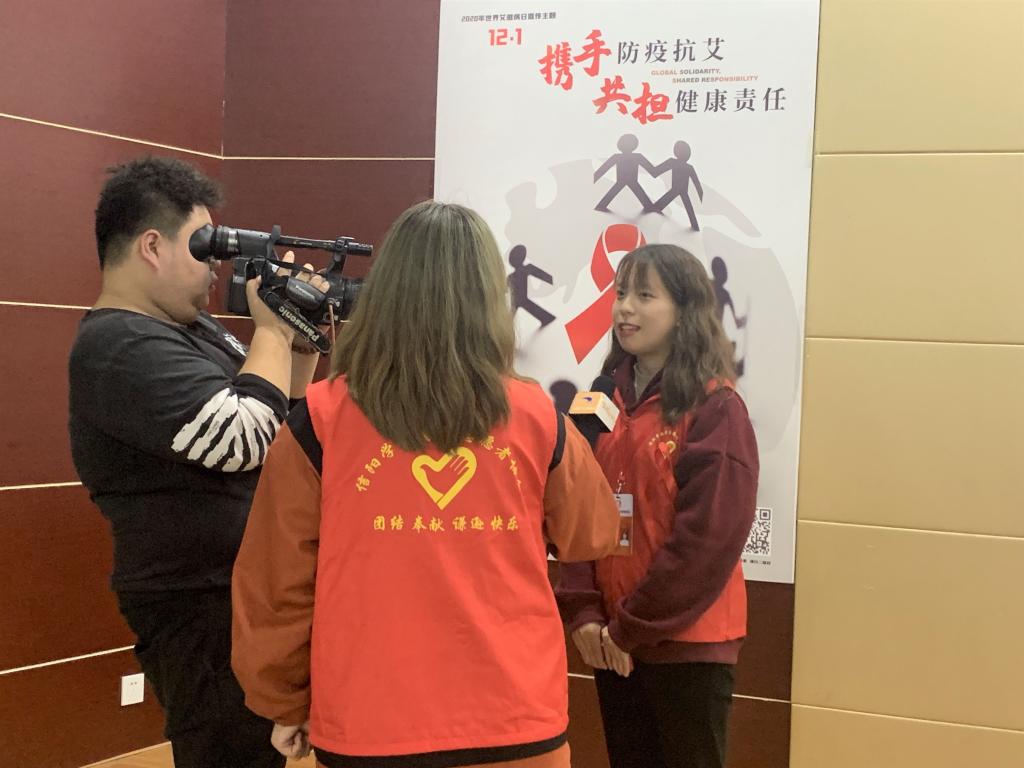 讲座知识竞赛环节,同学们积极参与,将艾滋病防治知识牢记于心。讲座后,信阳市民生电视台工作人员就本次讲座对青年志愿者协会相关负责人进行了采访。