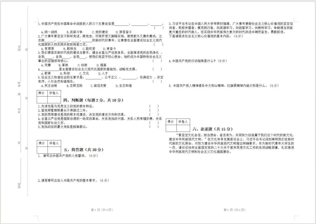 信阳学院青年共产主义理论学校第二十九期培训班结业考试试卷