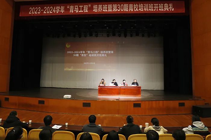 为深入学习贯彻习近平新时代中国特色社会主义思想和党的二十大精神,加强对广大团员的政治思想引领,推动团员和青年主题教育走深走实,11月28日下午,学校在音乐厅举行2023——2024学年“青马工程”培养班暨第30期“青校”培训班开班典礼。校党委专职副书记施昌海出席开班典礼,并作首场辅导报告。党委宣传部部长李肖利、党委组织部副部长杜倩、校团委书记郑山峰等有关部门负责人,各学院团总支书记和全体参训学员参加了开班典礼。郑山峰主持了开班典礼。