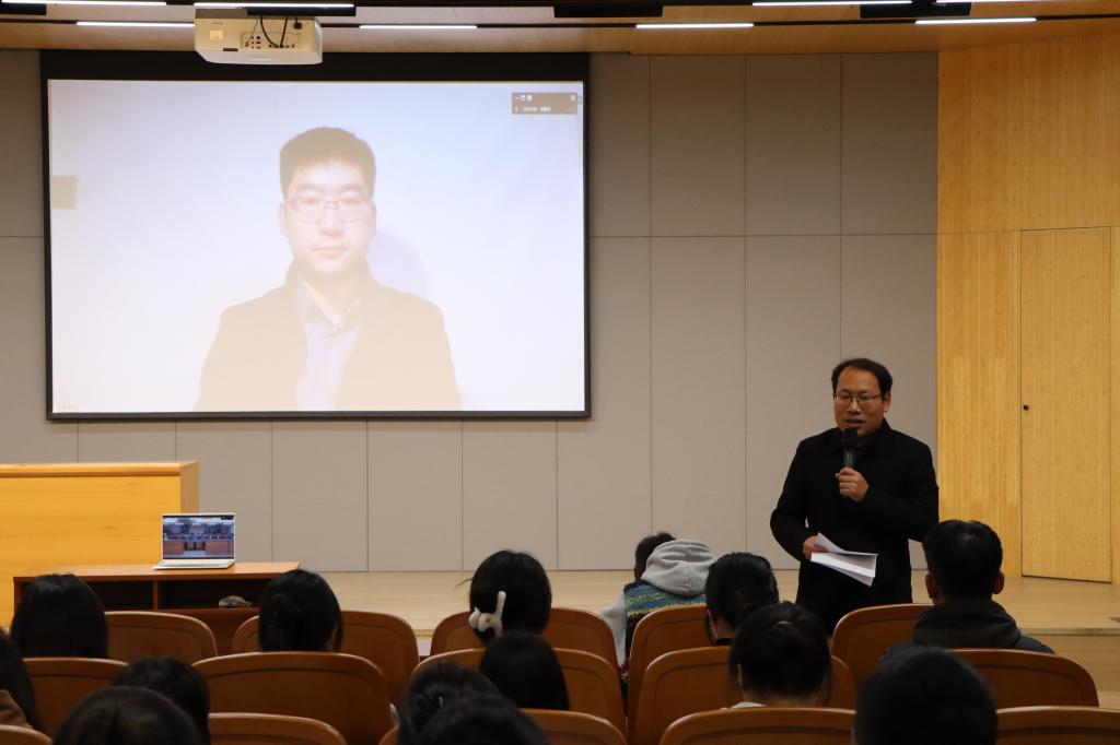报告开始前,郑山峰向全体学员详细介绍了吴宗璇在校期间的优异表现和在工作中的突出贡献,令在场的学生赞叹不已。