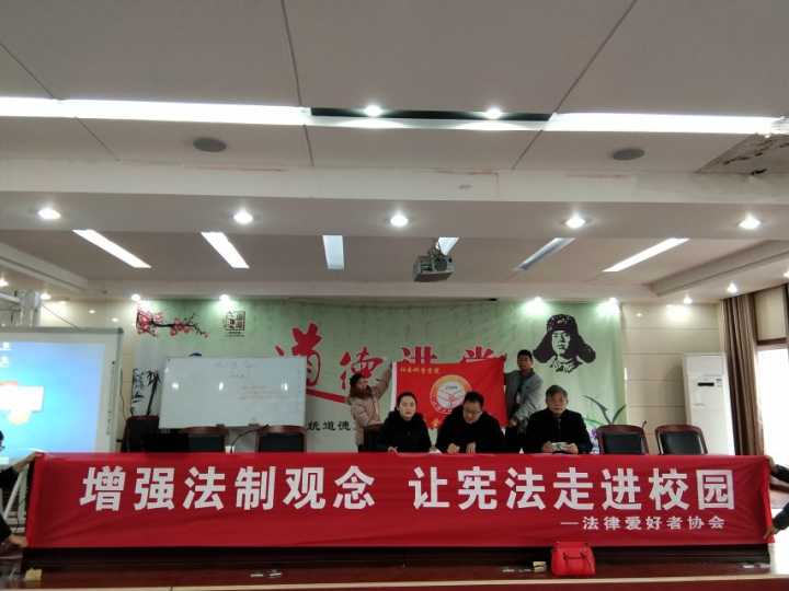 12月4日,在我校社会科学学院法学专业蔡坤朋老师的带领下,法律爱好者协会成员前往浉河中学开展“宪法进校园”的活动。
